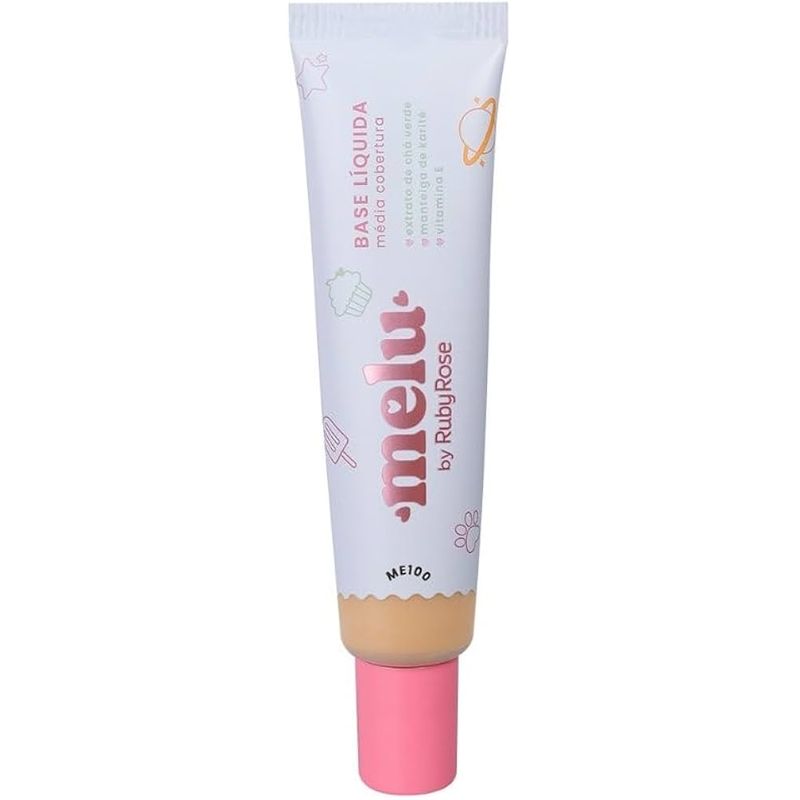 A Base Líquida Ruby Rose Melu ME100 oferece uma cobertura média, ideal para quem busca corrigir imperfeições sem pesar na maquiagem.