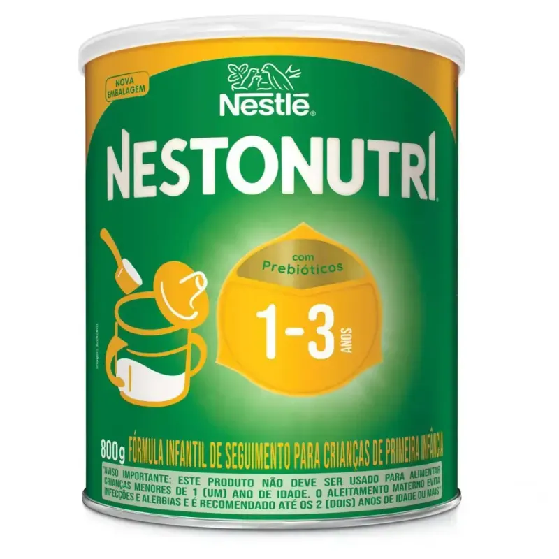 NESTONUTRI Composto Lácteo Infantil com óleos vegetais e fibras, contém 17 vitaminas e minerais. Rico em cálcio, fonte de ferro, fibras, rico em vitamina C e D que estimulam o crescimento e o desenvolvimento do seu filho. Não contém açúcar. Sem adição de sacarose, frutose e aromatizantes. Nestonutri foi desenvolvido especialmente para a fase pré-escolar. Propriedades: - Rico em Cálcio, Vitamina C e D. - Fonte de Minerais: Ferro, Zinco, Selênio, Fósforo. - Fontes de Vitaminas: A, E, K, B1, B2, B6, B12. - Fibras e Óleos Vegetais. Modo de Preparo (copo 200mL): Em um copo com água morna ou fria (180mL), coloque 6 colheres medida ou 2 colheres de sopa cheias (30g) de NESTONUTRI e misture bem. Recomendação: Até 3 copos ao dia. Rendimento: 800g = 5,3 litros. CONTÉM LACTOSE. ALÉRGICOS: CONTÉM LEITE E DERIVADOS, E DERIVADOS DE SOJA. NÃO CONTÉM GLÚTEN. ESTE PRODUTO NÃO É LEITE EM PÓ. O MINISTÉRIO DA SAÚDE INFORMA: APÓS OS 6 (SEIS) MESES DE IDADE CONTINUE AMAMENTANDO SEU FILHO E OFEREÇA NOVOS ALIMENTOS. A Organização Mundial da Saúde (OMS) recomenda a amamentação exclusiva até os seis (6) meses de idade. Nós da Nestlé, em consonância com a OMS, com a Sociedade Brasileira de Pediatria e Órgãos competentes, também apoiamos plenamente a amamentação exclusiva durante os seis (6) primeiros meses de vida sendo recomendado a extensão até os dois (2) anos de idade ou mais. AVISO IMPORTANTE: ESTE PRODUTO NÃO DEVE SER USADO PARA ALIMENTAR CRIANÇAS MENORES DE 1 (UM) ANO DE IDADE. O ALEITAMENTO MATERNO EVITA INFECÇÕES E ALERGIAS E É RECOMENDADO ATÉ OS 2 (DOIS) ANOS DE IDADE OU MAIS.