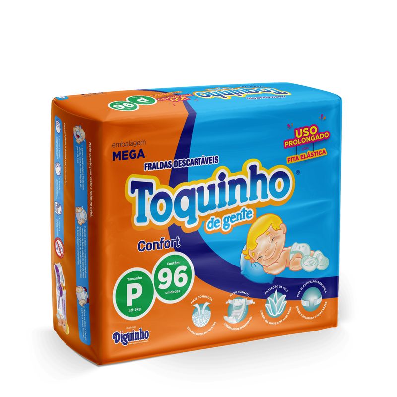 A Fralda Toquinho Confort Mega P é ideal para garantir a proteção e o conforto do seu bebê durante todo o dia. Com um pacote contendo 96 unidades, essa fralda possui uma camada de gel super absorvente, barreiras antivazamento e cintura elástica, proporcionando maior segurança para o seu pequeno.