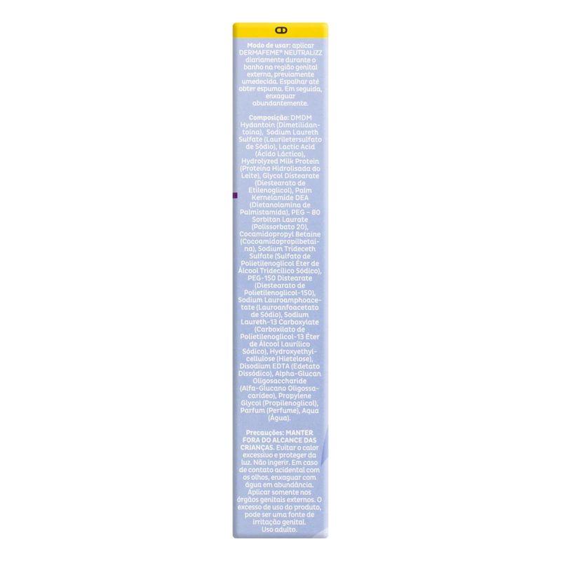 Sabonete Íntimo DERMAFEME Neutralizz - Tecnologia que bloqueia o odor e oferece 24h de proteção - é um sabonete íntimo líquido indicado para cuidar da higiene íntima da mulher, proporcionando agradável sensação de limpeza, conforto e bem-estar, além de possuir pH equilibrado com a região genital. Produto ginecologicamente testado. Kit Sabonete Íntimo DERMAFEME Neutralizz Sabe o que é melhor do que se sentir confortável e limpa durante o dia todo? É não precisar se preocupar quando seu frasco de Dermafeme Neutralizz acabar! Com o novo kit, você garante dois frascos de 200 ml cada e evita qualquer imprevisto. Dermafeme Neutralizz foi desenvolvido com a tecnologia Odor Free e uma fragrância mais suave. Por isso, age diretamente na neutralização de odores. Nosso sabonete íntimo também equilibra o pH da região íntima, proporcionando higiene completa e proteção por até 24h, sendo dermatologicamente e ginecologicamente testado! Modo de uso: aplique diariamente durante o banho na região genital externa previamente umedecida e espalhe até obter espuma. Em seguida, enxague abundantemente.